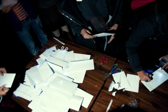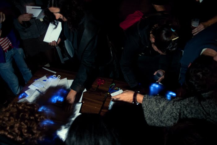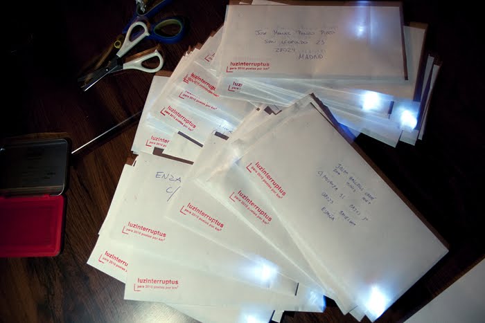 Los sobres con luz, permanecieron colgados de los árboles durante 3 días, sirviendo de íntima iluminación a las veladas poéticas. La última noche, aun con luz en de su interior, se ofrecieron al público para que los conservara, o mejor, para que escribieran la dirección de un ser querido, al que nosotros haríamos llegar el sobre.