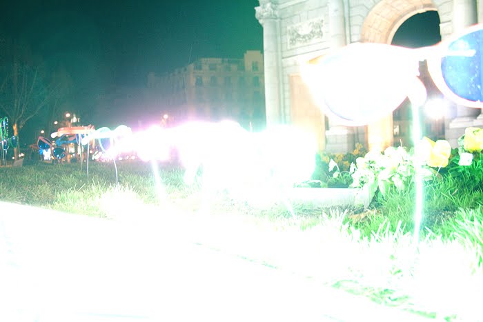Si en general las calles de Madrid están demasiado iluminadas, algunos monumentos principales, no se pueden casi mirar, por la cantidad de luz que se proyecta sobre ellos. De todos ellos, la Puerta de Alcalá, estamos seguros que es el que más luz refleja en su superficie.