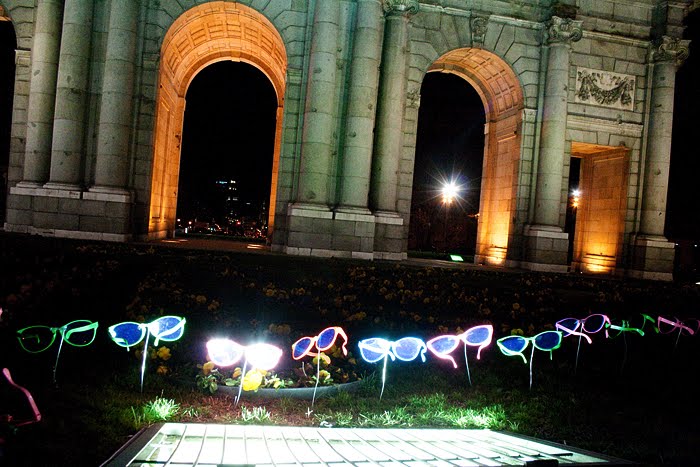 Estando al lado del Parque del Retiro, uno de los pocos espacio naturales dentro de la ciudad, donde aún se respeta la oscuridad, se hace más evidente y llamativa esta sobreiluminación.